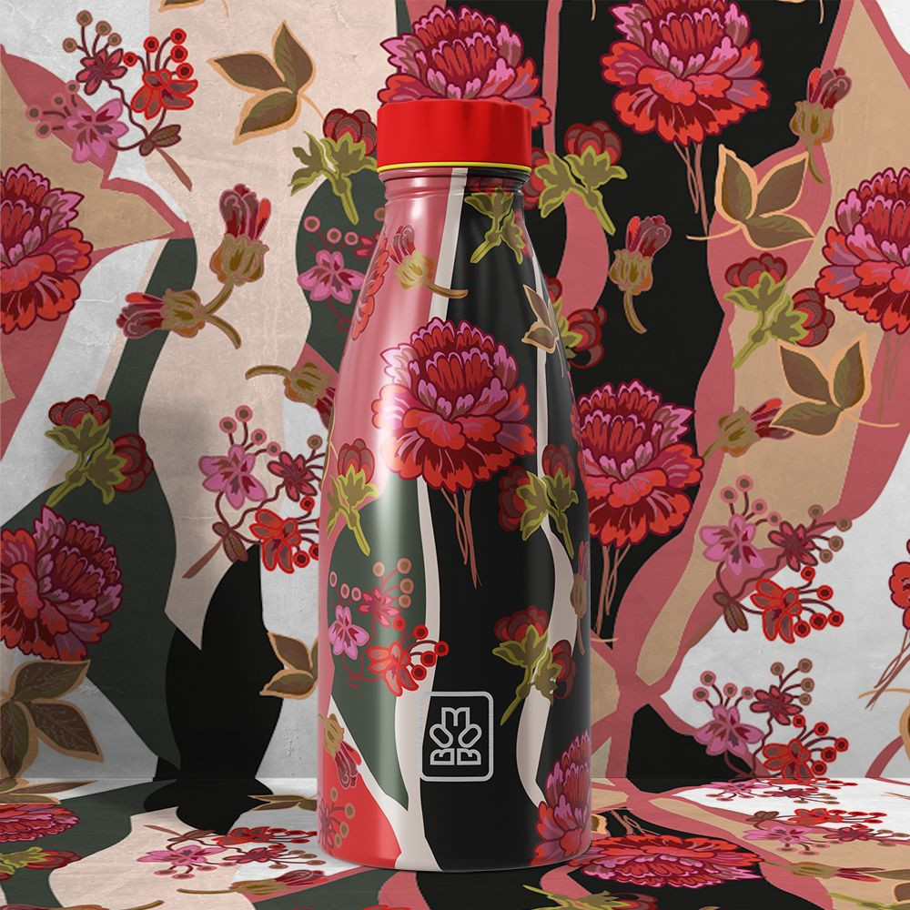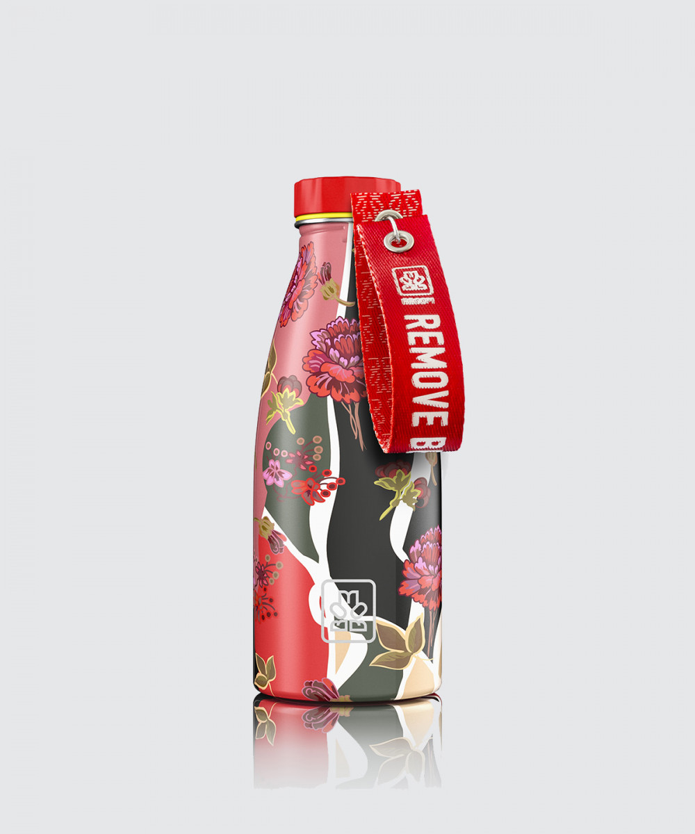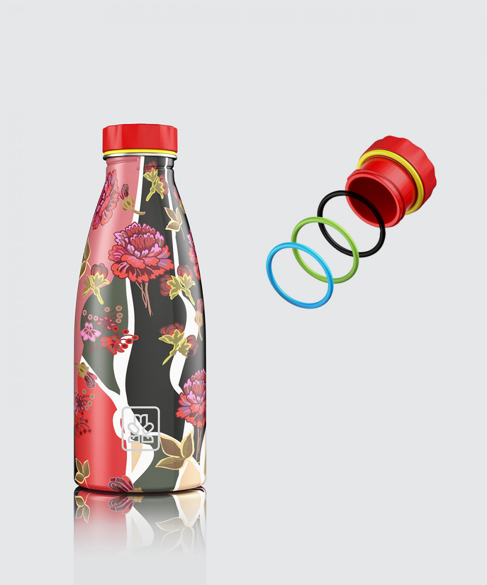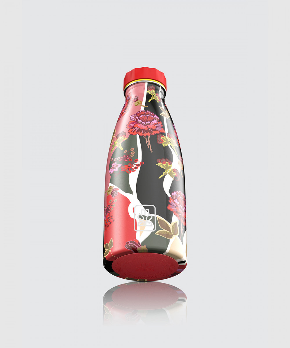 100%-ban Olasz dizájnnal rendelkező rozsdamentes acél, szimplafalú vizes palack. Fényes bevonattal, vörös, szilikon csúszásgátló talppal és ikonikus piros kupakkal.